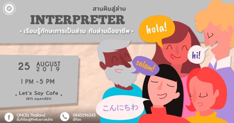 Today, I read news about being interpreter, I find the news about Interpreter course and exhibition. It shows in Thai social. There are many people who are interested in this job, and it might be the good start of being interpreter. Unfortunately, this course has been passed. So, if there is a chance, I would defenitely join the course.